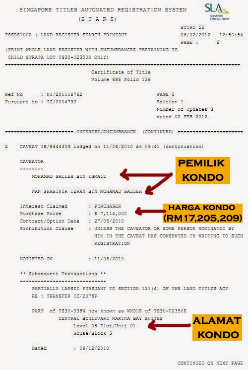 Butiran Ringkas Kondo Mewah Keluarga Shahrizat Abdul Jalil Di Marina Bay Suites, Singapura