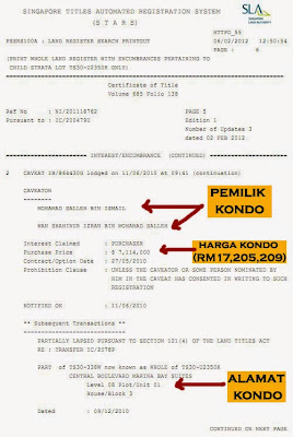 - Harga Kondo Mewah : S$7,177,000 bersamaan RM17,357,575