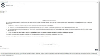 ·     dari 4 Jun 2015, IPIC telah mengambil alih obligasi untuk membayar (secara interim) semua faedah yang kena dibayar di bawah dua IPIC dijamin pembiayaan 1MDB berjumlah AS $ 3.5 bilion dalam jumlah prinsipal agregat (yang Notes );