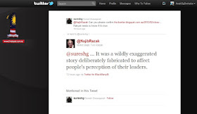 "Ini cerita yang dibesar-besarkan dan sengaja direka untuk menjejaskan persepsi rakyat tentang pemimpin mereka," katanya di Twitter malam tadi.